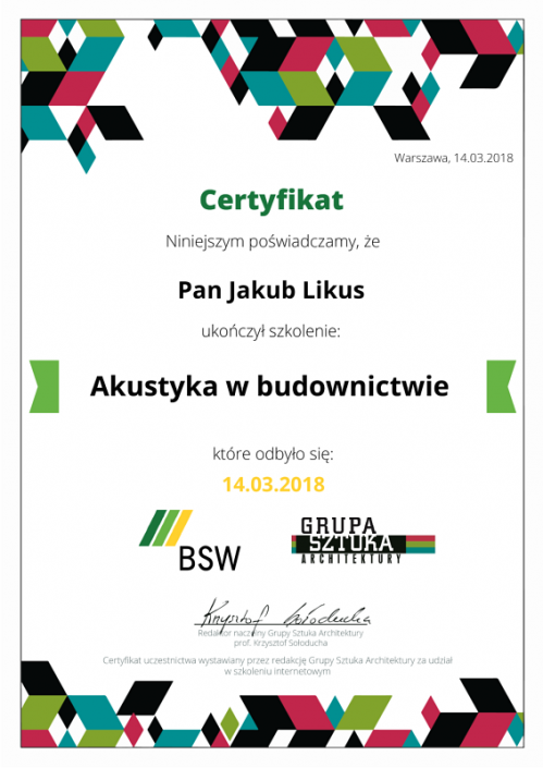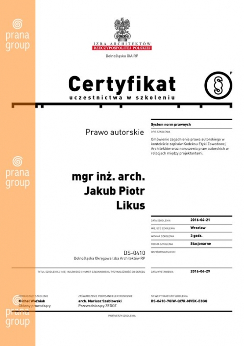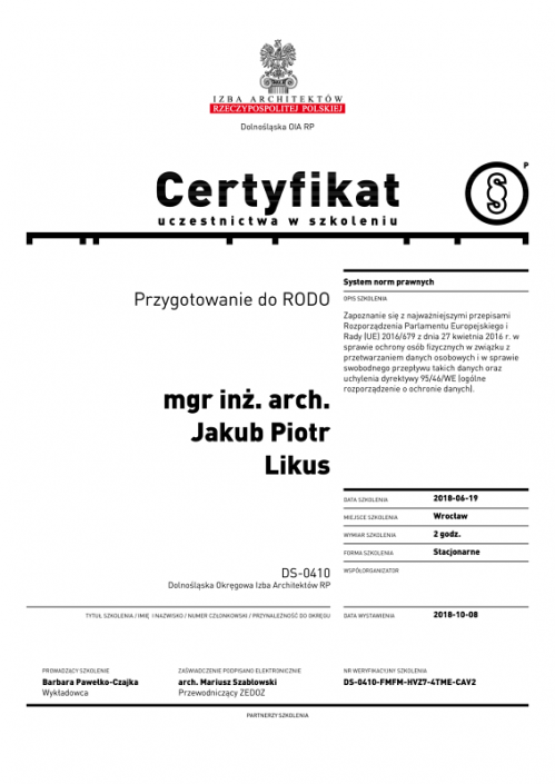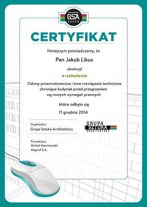 Certyfikaty z niektórych szkoleń, w których braliśmy udział.